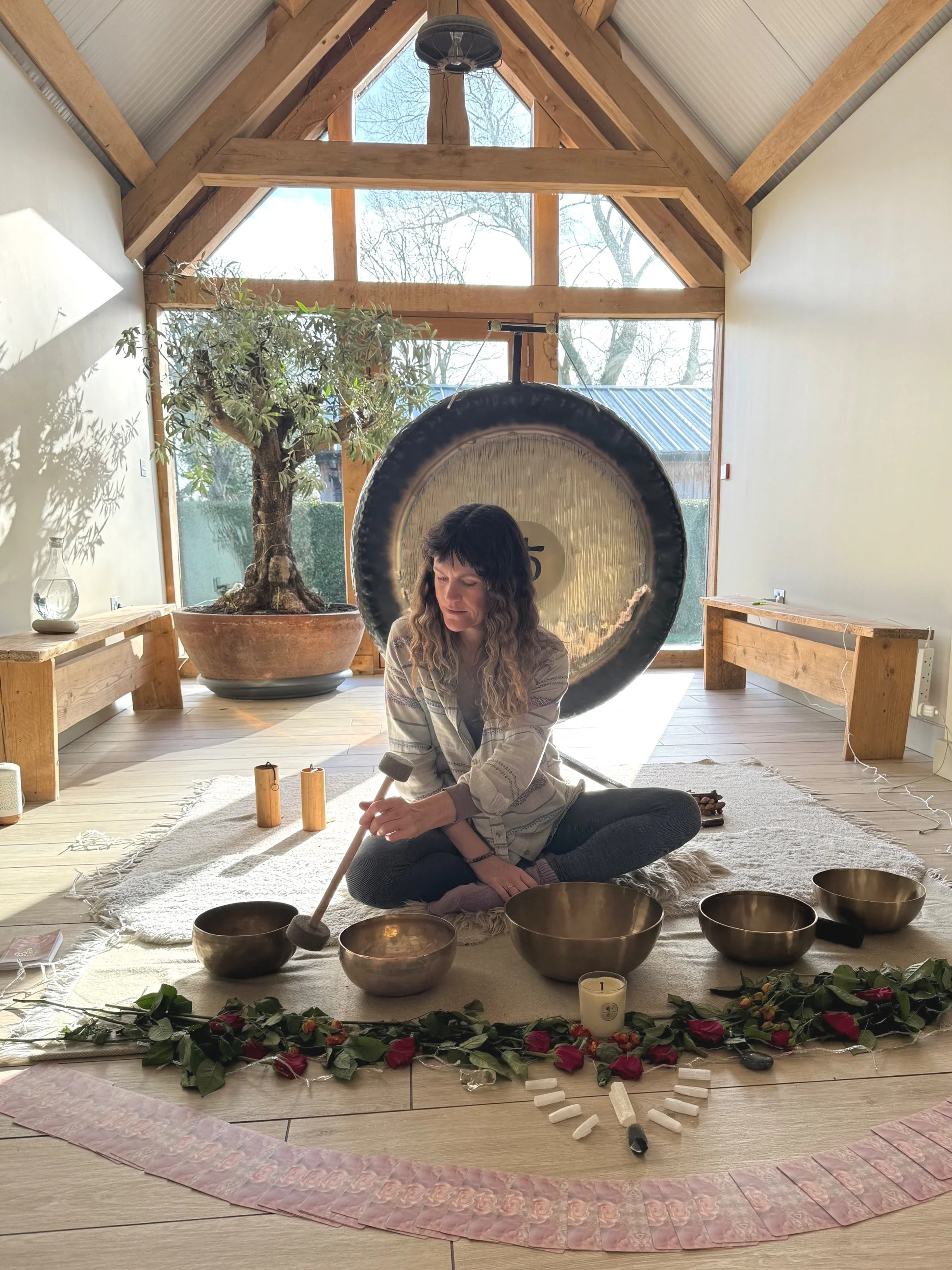 Louise works with a variety of instruments including Planetary Earth Gong, Alchemy Crystal Singing Bowls, Himalayan Singing bowls, harmonic chimes, voice, lap harp and various percussive instruments.
